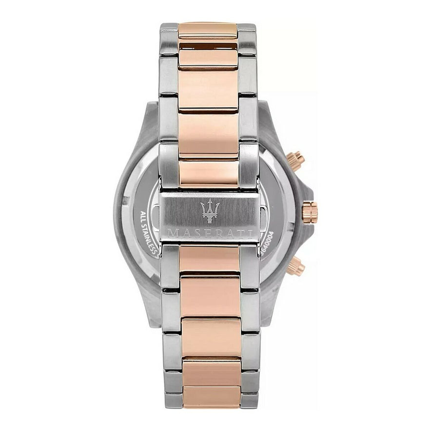 De herenhorloge Maserati model R8873640012 is een combinatie van verfijnd design en robuuste functionaliteit, kenmerkend voor een Italiaans merk dat bekendstaat om elegantie en precisie. Dit horloge valt op door de blauwe wijzerplaat, die een moderne en veelzijdige uitstraling geeft, geschikt voor dagelijks gebruik en formele gelegenheden. Het mineraalglas is krasbestendig en bestand tegen lichte schokken, wat de duurzaamheid van het horloge waarborgt. De roestvrijstalen kast biedt slijtvastheid en behoudt een gepolijste, duurzame look, terwijl de roestvrijstalen band zorgt voor een veilige sluiting met een druksluiting die eenvoudig te gebruiken is en comfortabel zit. Met een waterdichtheid van 10 atm is dit horloge geschikt voor watersporten zoals zwemmen en snorkelen, maar niet voor professioneel duiken, waardoor het een functioneel accessoire is voor sportieve en stedelijke omgevingen. Het ontwerp bevat een chronograaf functie, ideaal voor nauwkeurig tijdsinterval meten, wat de technische waarde van het horloge verhoogt. Daarnaast is het product vervaardigd met componenten en design uit China, Spanje en Italië, wat een internationale mix weerspiegelt die kwaliteit en stijl garandeert. Het resultaat is een herenhorloge dat traditionele horlogemakerij combineert met functies die passen bij de moderne man, en zich positioneert als een praktisch en stijlvol stuk binnen de categorie roestvrijstalen horloges met gematigde sportieve kenmerken.