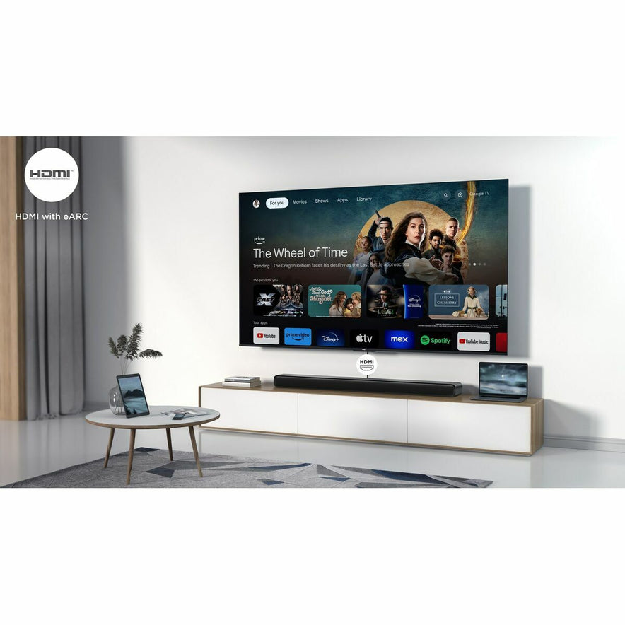 De TCL S45HE soundbar in zwart is een apparaat dat ontworpen is om de luisterervaring thuis aanzienlijk te verbeteren. Het is compatibel met een breed scala aan televisies dankzij de Bluetooth-connectiviteit, die eenvoudige draadloze overdracht mogelijk maakt, en de eARC-technologie (Enhanced Audio Return Channel), die hoogwaardige digitale audiosignalen van de tv naar de soundbar stuurt. Dit model combineert de functionaliteit van een luidspreker met het gebruiksgemak van een soundbar in een compact formaat dat makkelijk in huis te integreren is zonder veel ruimte in te nemen. Het ondersteunt Dolby Atmos 2.0 surround sound, wat zorgt voor een meer meeslepende en dynamische audio-ervaring met een driedimensionaal effect dat diepte en helderheid van geluidspistes verbetert. Daarnaast beschikt het over een praktische automatische uitschakelfunctie voor energiezuinig gebruik, die het apparaat na een periode van inactiviteit automatisch uitschakelt. Met een sober en elegant ontwerp in zwart past deze TCL soundbar bij verschillende interieurstijlen en biedt het een toegankelijke oplossing voor wie de geluidskwaliteit van audiovisuele systemen wil verbeteren zonder technische complicaties of meerdere aansluitingen. De combinatie van moderne technologieën en gebruiksvriendelijke functies maakt het een uitgebalanceerde keuze voor gebruikers die surround sound en geavanceerde connectiviteit zoeken in een stijlvol en eenvoudig te bedienen formaat.