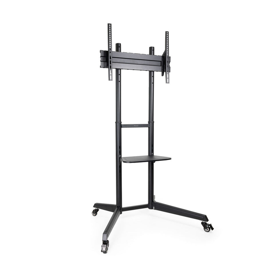 De TooQ TV-standaard model FS1170M-B is een vloermontage standaard ontworpen voor schermen van 37 tot 70 inch, die een praktische en veelzijdige oplossing biedt voor het plaatsen van televisies op plekken zonder muurbeugel of waar een mobiel frame gewenst is. Deze standaard valt op door zijn zwarte afwerking, die discreet is en makkelijk past in diverse interieurstijlen. Hij is speciaal gemaakt voor schermen met een standaard VESA-bevestiging van 10 x 10 cm, wat compatibiliteit met veel modellen garandeert. Het ontwerp bevat wieltjes die het verplaatsen en herpositioneren van de tv moeiteloos maken, ideaal voor dynamische omgevingen of frequente locatiewisselingen. Daarnaast is er een kabelmanagementsysteem geïntegreerd dat helpt om de ruimte netjes en zonder kabelwirwar te houden, wat de uitstraling en veiligheid rondom de audiovisuele apparatuur verbetert. De stevige constructie zorgt voor stabiliteit en betrouwbare ondersteuning van grote schermen, geschikt voor zowel thuisgebruik als professioneel gebruik. Kortom, de TooQ FS1170M-B vloermontage met wielen is een functionele en flexibele keuze voor wie een aanpasbare, robuuste en makkelijk te verplaatsen standaard zoekt voor middelgrote tot grote schermen.