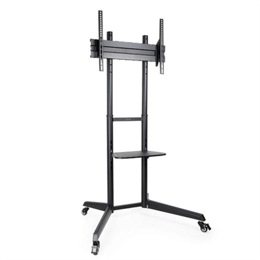 De TooQ TV-standaard model FS1170M-B is een vloermontage standaard ontworpen voor schermen van 37 tot 70 inch, die een praktische en veelzijdige oplossing biedt voor het plaatsen van televisies op plekken zonder muurbeugel of waar een mobiel frame gewenst is. Deze standaard valt op door zijn zwarte afwerking, die discreet is en makkelijk past in diverse interieurstijlen. Hij is speciaal gemaakt voor schermen met een standaard VESA-bevestiging van 10 x 10 cm, wat compatibiliteit met veel modellen garandeert. Het ontwerp bevat wieltjes die het verplaatsen en herpositioneren van de tv moeiteloos maken, ideaal voor dynamische omgevingen of frequente locatiewisselingen. Daarnaast is er een kabelmanagementsysteem geïntegreerd dat helpt om de ruimte netjes en zonder kabelwirwar te houden, wat de uitstraling en veiligheid rondom de audiovisuele apparatuur verbetert. De stevige constructie zorgt voor stabiliteit en betrouwbare ondersteuning van grote schermen, geschikt voor zowel thuisgebruik als professioneel gebruik. Kortom, de TooQ FS1170M-B vloermontage met wielen is een functionele en flexibele keuze voor wie een aanpasbare, robuuste en makkelijk te verplaatsen standaard zoekt voor middelgrote tot grote schermen.