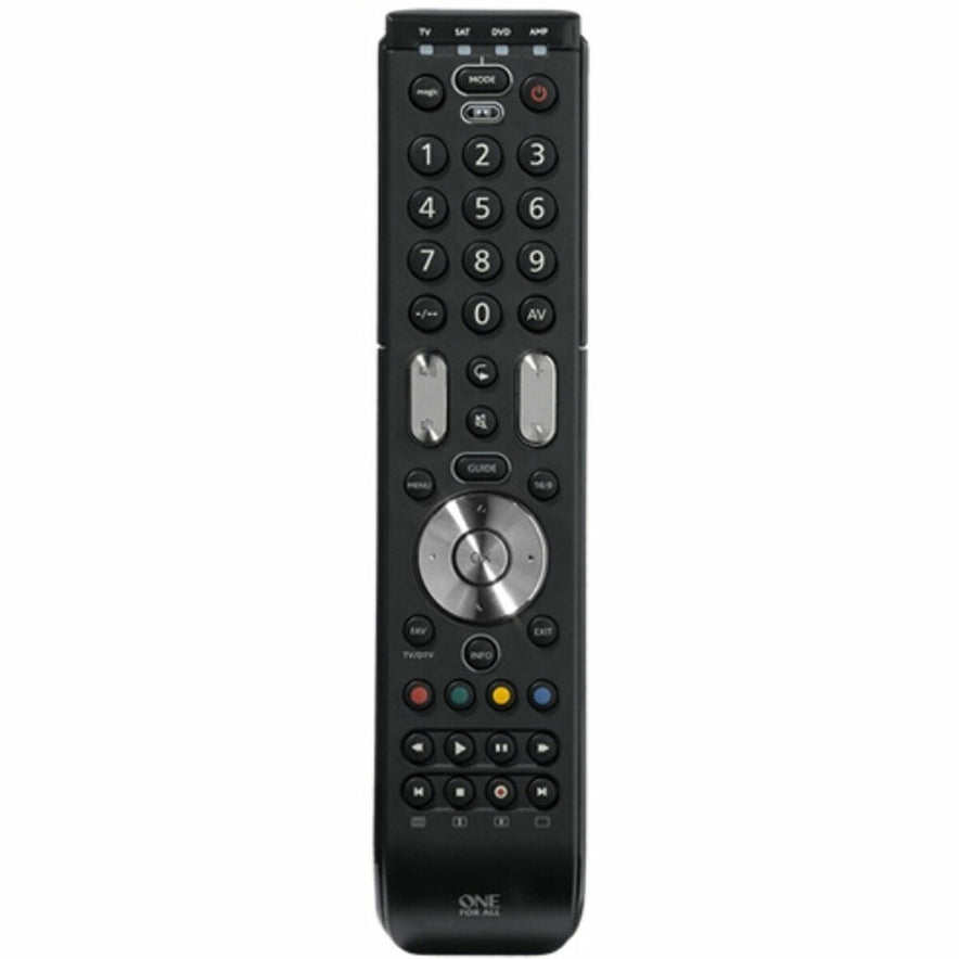 One For All Essence 4. Merkcompatibiliteit: Alle merken, Interface: IR Draadloos. Maximumbereik: 20 m. Input type: Drukknopen, Aantal knoppen: 41