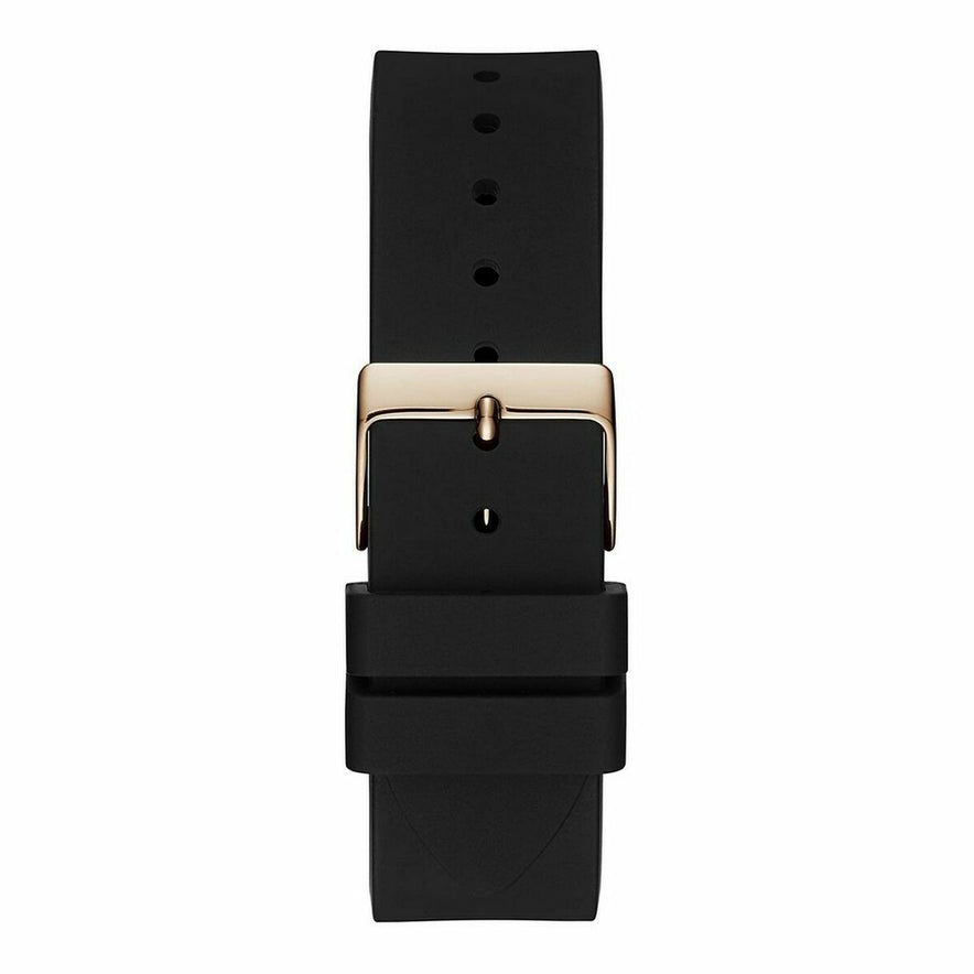 Het Dameshorloge Guess GW0118L2 is een polshorloge voor dagelijks gebruik dat modern design combineert met duurzame materialen en een zeer uitgebalanceerd formaat. Het heeft een edelstalen kast van Ø 39 mm, een veelzijdige maat die goed past om de meeste damespolsen, met een goudkleurige afwerking die zijn elegante uitstraling benadrukt. Het model valt op door een edelstalen band en een siliconen band in respectievelijk multicolor en zwart, afhankelijk van de uitvoering, zodat de stijl varieert van verfijnd tot sportief en casual, altijd met een gespsluiting voor een veilige pasvorm. Het quartz-uurwerk zorgt voor een nauwkeurige tijdweergave en eenvoudig onderhoud, terwijl het mineraalglas goede bescherming biedt tegen krassen en alledaagse stoten. Het horloge beschikt over een dag- en datumaanduiding, praktisch voor wie snel de kalender wil raadplegen zonder de mobiele telefoon te pakken. Met een gewicht van circa 100 g voelt het solide aan zonder te zwaar te zijn om de pols. De waterdichtheid van 5 ATM maakt het geschikt voor spatwater, regen of handen wassen, mits het niet wordt gebruikt voor duiken of intensieve watersport. Het model wordt geleverd in een Guess merkdoos, wat het opbergen vergemakkelijkt en het ook tot een geschikte cadeau-optie maakt. Alles bij elkaar biedt dit model GW0118L2 een goede balans tussen eigentijds design, basisfunctionaliteit en materiaalkwaliteit binnen het assortiment dameshorloges van Guess.