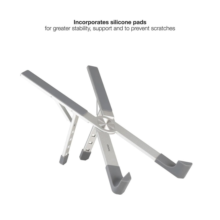 De TooQ TQLRS0036-AL is een monitor die vooral bedoeld is als standaard voor laptops. Het stevige en elegante frame is gemaakt van aluminium met een grijze en zilveren afwerking, waardoor hij past in diverse kantooropstellingen of gepersonaliseerde werkplekken. Met een breedte van 260 mm is deze standaard ontworpen om een stabiele basis te bieden aan laptops tot 17,3 inch, met voldoende ruimte voor goede ventilatie en ondersteuning van een ergonomische houding tijdens lange werkdagen achter de computer. De standaard heeft een antislipbasis die zorgt voor een veilige grip op gladde oppervlakken en voorkomt onbedoeld verschuiven. Dankzij het verstelbare ontwerp kan de hoogte en kijkhoek eenvoudig worden aangepast aan de voorkeur van de gebruiker, wat bijdraagt aan comfort en een gezonde werkhouding op kantoor of tijdens het studeren. Dit product is een praktische en functionele oplossing voor wie de organisatie en efficiëntie van de mobiele werkplek wil verbeteren, met gebruik van duurzame materialen en een ontwerp gericht op zowel stevigheid als uitstraling. Zo is de TooQ TQLRS0036-AL een betrouwbare keuze voor gebruikers die waarde hechten aan veiligheid, flexibiliteit en stijl in laptopaccessoires.