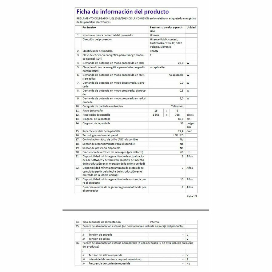 De Hisense 32A4N is een Smart TV van 32 inch ontworpen voor gebruikers die een praktische en functionele oplossing zoeken voor hun thuisentertainment. Het 32" scherm biedt een gemengde resolutie met Full HD en HD, wat zorgt voor een goede beeldkwaliteit bij high-definition content en een geschikte kijkervaring voor kleinere ruimtes of slaapkamers. Dit model heeft een sober ontwerp in zwarte kleur en een behuizing van plastic, wat bijdraagt aan een licht gewicht en eenvoudige installatie. Het beschikt over een DVB-C tuner voor digitale kabeltelevisie, waarmee het aantal beschikbare zenders wordt uitgebreid zonder extra apparaten. Tot de opvallende functies behoren ruisonderdrukkingstechnologie in het beeld en een geluids-equalizer die de luisterervaring verbetert door frequenties aan te passen voor een evenwichtiger geluid. Als Smart TV biedt het toegang tot streaming-apps en digitale platforms via geïntegreerde connectiviteit, wat navigatie en online contentconsumptie vergemakkelijkt. Daarnaast heeft het HDMI-poorten voor het aansluiten van externe apparaten zoals consoles, mediaspelers of pc’s, wat de veelzijdigheid thuis vergroot. De energieklasse is F, wat wijst op een relatief hoog verbruik vergeleken met efficiëntere modellen, een punt om rekening mee te houden bij langdurig gebruik en energiekosten. De Hisense 32A4N is een betaalbare en praktische keuze voor wie een compacte Smart TV wil die zowel traditionele tv als online diensten biedt met acceptabele beeldkwaliteit en basisfunctionaliteiten voor dagelijks gebruik.