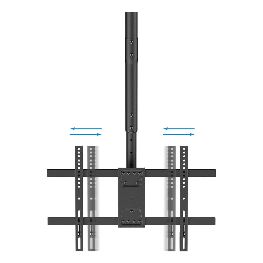De Soporte TV Techo TooQ LPCE1186TSLI-B is een robuuste en veelzijdige oplossing, ontworpen om schermen van 43" tot 86" veilig en stijlvol aan het plafond te monteren in zowel woon- als zakelijke omgevingen. Gemaakt van hoogwaardig staal met een elegante zwarte afwerking, combineert deze beugel duurzaamheid met een modern uiterlijk en is hij geschikt voor een breed scala aan televisies dankzij de compatibiliteit met de VESA-standaard van 20 x 20 cm. Belangrijke kenmerken zijn de in hoogte verstelbare constructie, waarmee de positie van de tv eenvoudig kan worden aangepast aan de ruimte, en het draaibare en kantelbare systeem voor optimale kijkhoeken en comfort. De verstelbare kantelfunctie helpt om reflecties te verminderen en het kijkgemak te vergroten, terwijl de geïntegreerde kabelmanagement zorgt voor een nette en opgeruimde installatie zonder kabelwarboel. Het ontwerp is gericht op een bijzonder stabiele en veilige plafondmontage en kan tot 60 kg dragen zonder de structuur of het apparaat in gevaar te brengen. Dankzij de solide materialen en geavanceerde functies is deze beugel een uitstekende keuze voor wie maximale flexibiliteit en langdurige betrouwbaarheid wenst. Met de TooQ LPCE1186TSLI-B wordt het integreren van grote schermen aan het plafond eenvoudig, veilig en stijlvol.