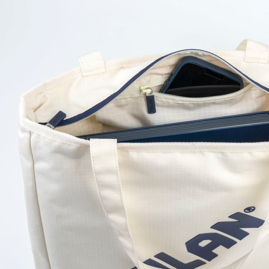 De boodschappentas Milan is een functioneel en stevig accessoire, ideaal voor dagelijks gebruik. Het heeft een shopper-ontwerp in de kleur beige, gemaakt van polyester met ripstop-weefsel, een speciale techniek waarbij dikke draden in een kruispatroon zijn verwerkt om het oppervlak te versterken, waardoor de tas licht en zeer duurzaam is tegen scheuren en beschadigingen. De tas beschikt over een ruim en veilig hoofdvak dat met een rits sluit, wat goede bescherming biedt voor je persoonlijke spullen. Binnenin bevindt zich een ritsvakje om kleine of delicate items beter te organiseren. De binnenvoering sluit aan bij het ontwerp met een ruitjespatroon dat de iconische vorm van Milan-gommen nabootst, wat een onderscheidend en verzorgd detail toevoegt. Deze tas biedt niet alleen een praktisch ontwerp, maar ook geoptimaliseerde afmetingen van 38 x 36 x 6,5 cm en een capaciteit van ongeveer 7,5 liter, waardoor je er gemakkelijk dagelijkse boodschappen of persoonlijke spullen in kunt meenemen. Bovendien maakt de hengellengte van 27 cm het mogelijk de tas over de schouder of in de hand te dragen, passend bij verschillende stijlen en behoeften. Dankzij de combinatie van technische materialen en een eenvoudig maar functioneel ontwerp is de Milan-tas een veelzijdige oplossing voor wie comfort, stevigheid en een aantrekkelijk uiterlijk zoekt in een boodschappentas.